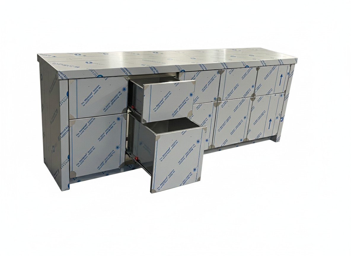 Deze geweldige ladekast van Juvama word op maat en met groot vakmanschap voor u geproduceerd. Naast dit ontwerp bent u ook met een eigen ontwerp van harte welkom. We gaan graag met u in gesprek om tot een mooie uitvoering te komen.  De kast is volledig uit RVS gemaakt en kan naar wens ook worden voorzien van een RAL kleur. De RVS meubels kunnen we eventueel ook leveren met een houten of natuurstenen blad.
