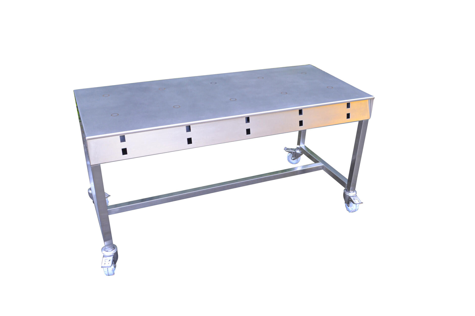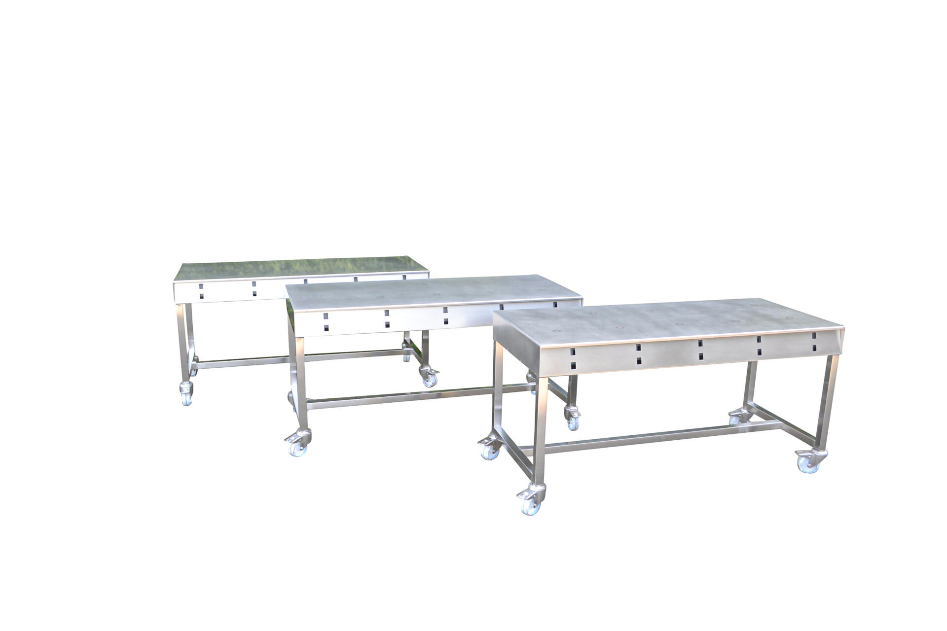 Jarenlange ervaring heeft ons geleerd dat geen uitdaging te groot is. Talloze unieke uitdagingen waarin we altijd tot een duurzame oplossing zijn gekomen, vervaardigd uit roestvast staal. Onze RVS tafels zijn de perfecte oplossing voor zowel laboratoria als binnen een industriële omgevingen. Ze zijn leverbaar in iedere gewenste afmeting en staan bekend om hun stevige en onverwoestbare constructie. De tafels kunnen geheel naar wens worden uitgevoerd. Onderstaand een aantal voorbeelden van bijzondere tafels. Tafels met draagrollen, sectietafels, tafels met ingebouwde magneetroerders en tafels waarmee brand testen onder verschillende hoeken worden uitgevoerd. Allen projecten die we in nauwe samenwerking met onze opdrachtgevers hebben ontwikkeld.