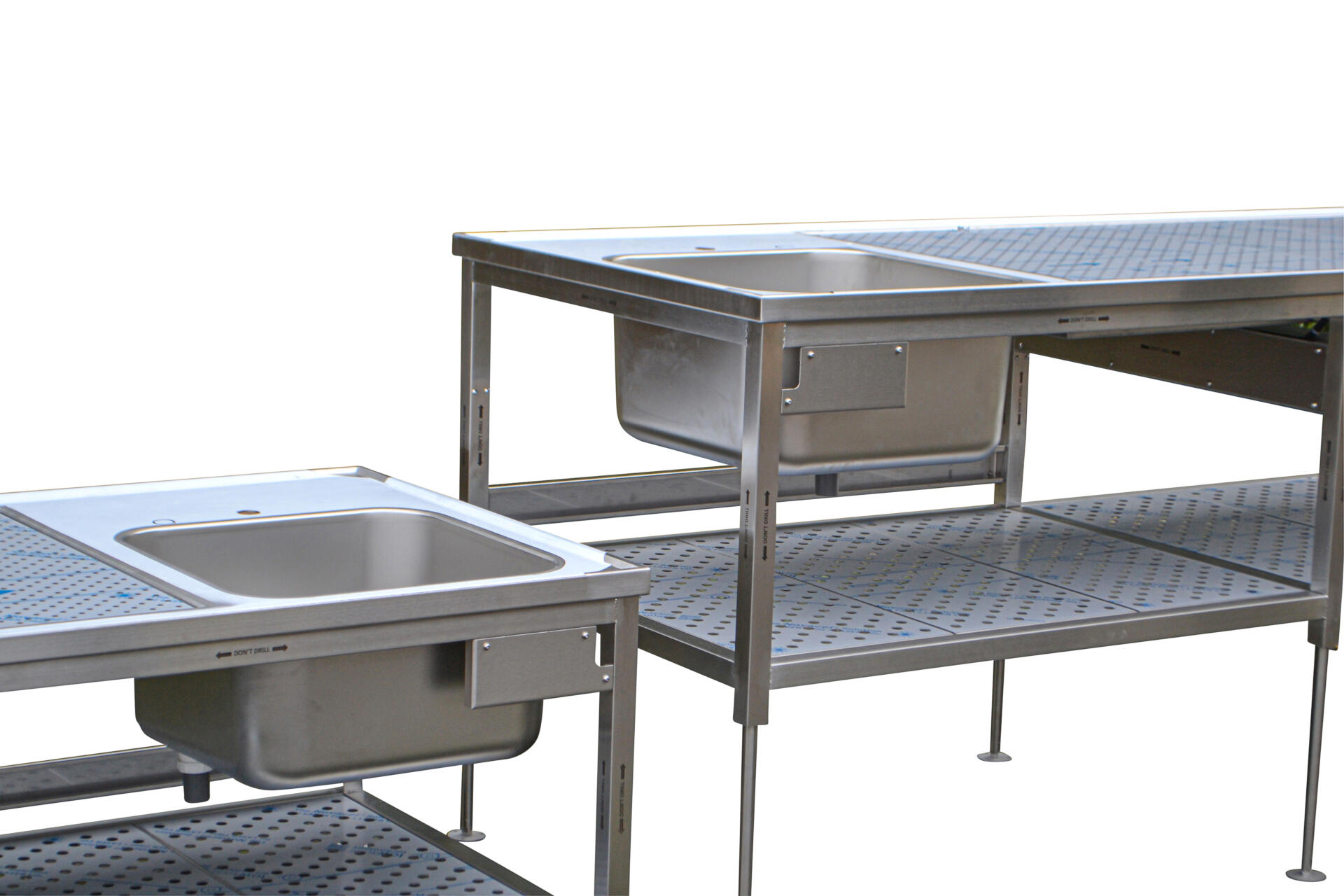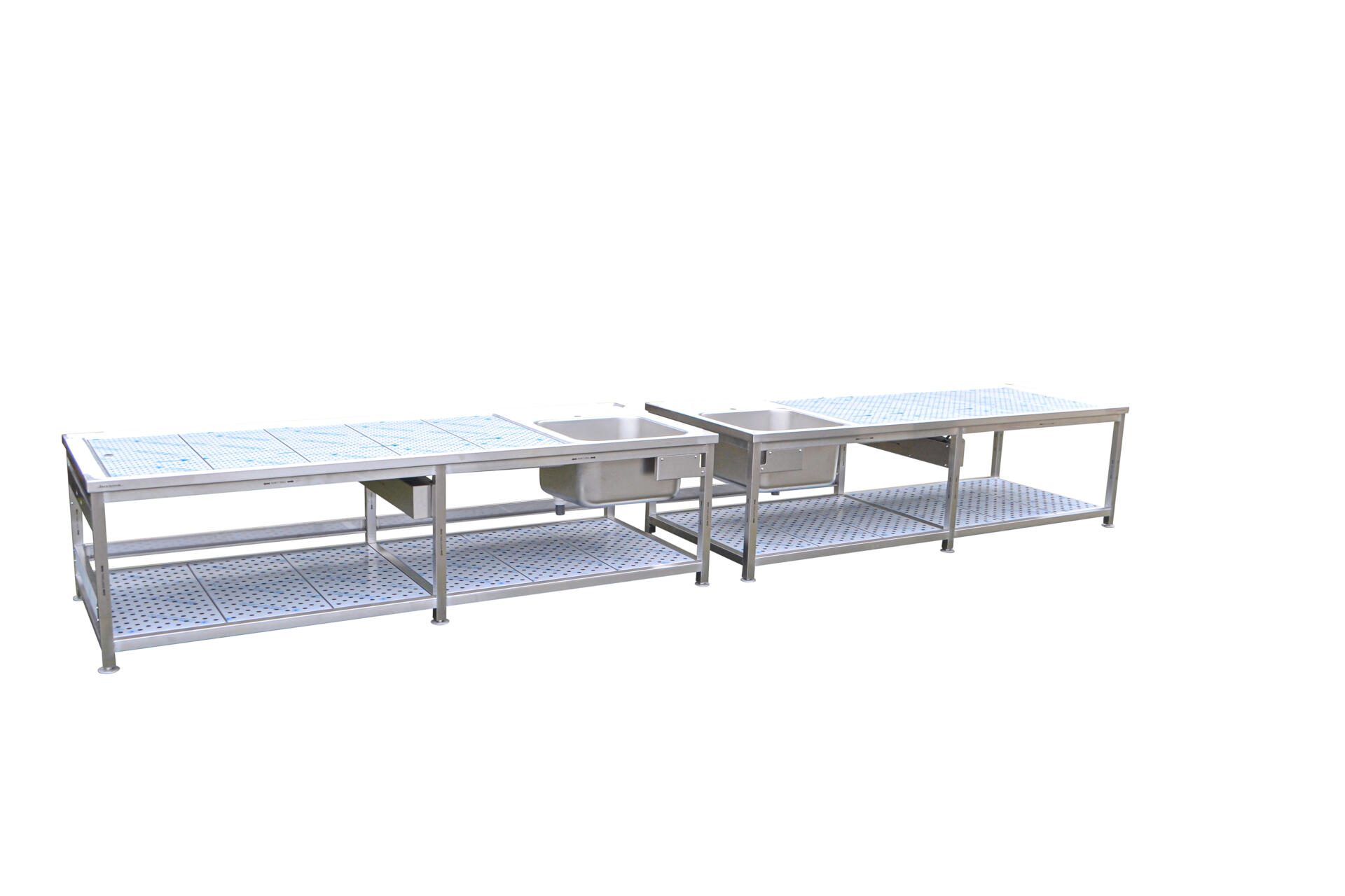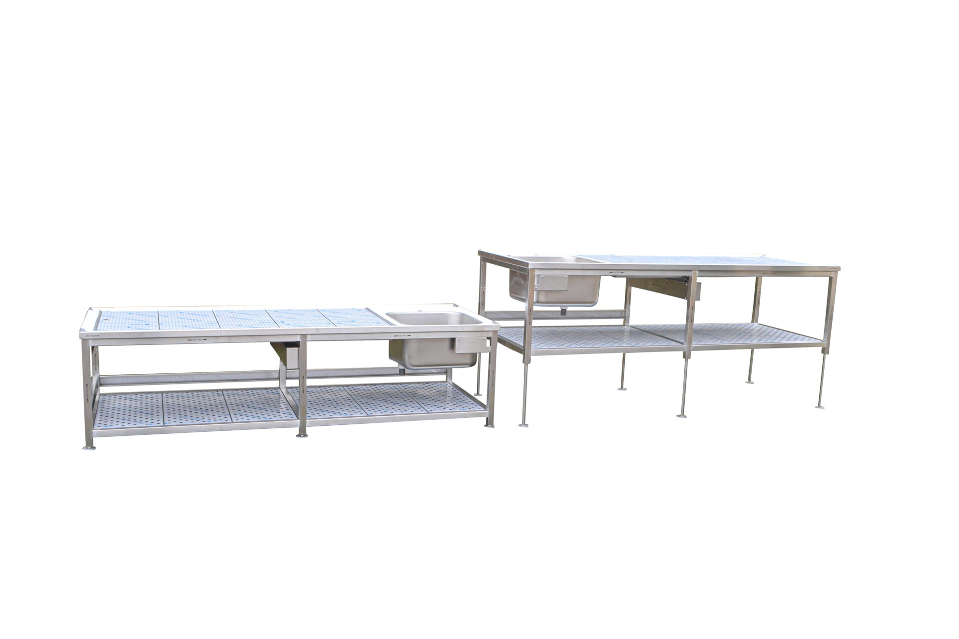 In hoogte verstelbare tafels van roestvast staal